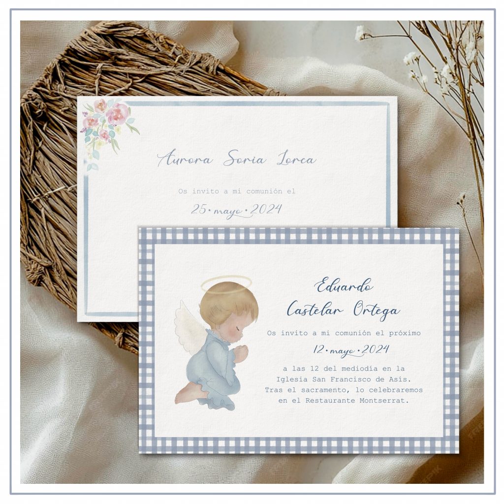Si quieres personalizar tu invitación de comunión o bautizo con una ilustración personalizada puedes informarnos y lo adaptamos al evento.