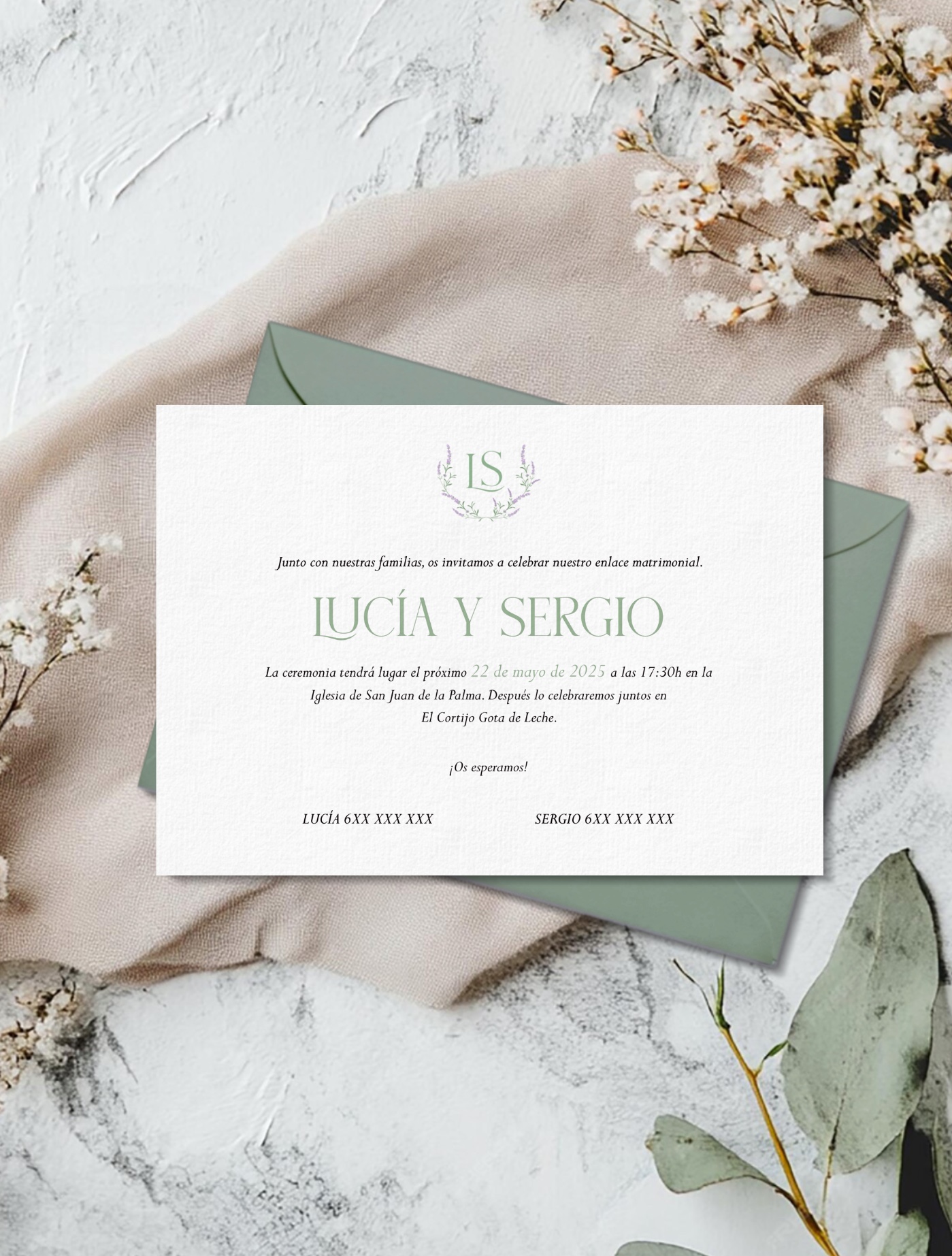 SOBRE NO INCLUIDO. Puedes elegir el sobre para completar la invitación en la sección SOBRES donde podrás encontrar una gran variedad de estilos: artesanales, clásicos, forrados…