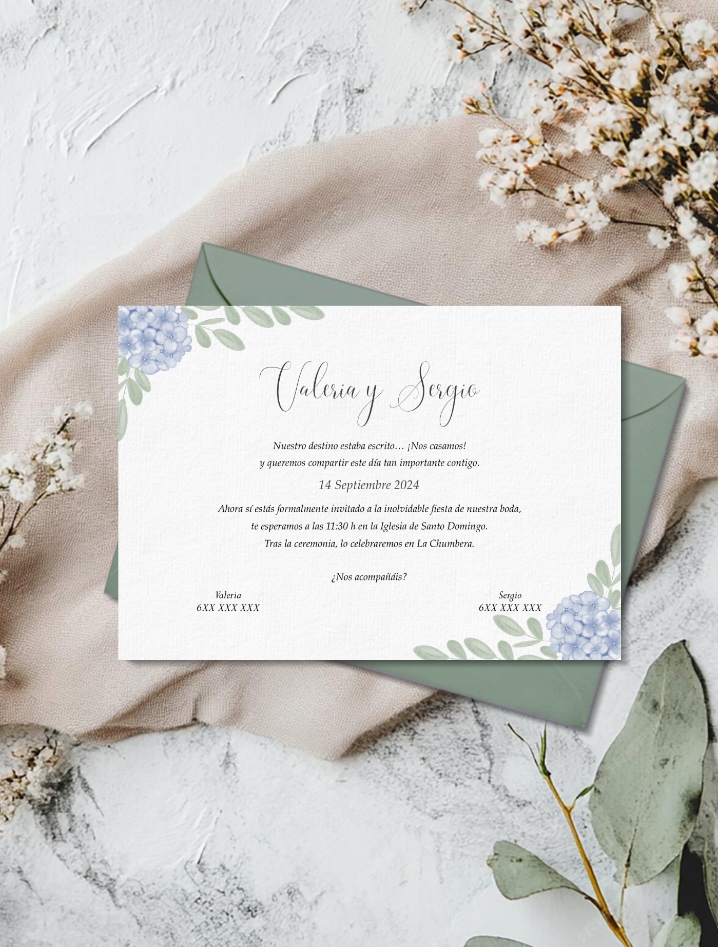 SOBRE NO INCLUIDO. Puedes elegir el sobre para completar la invitación en la sección SOBRES donde podrás encontrar una gran variedad de estilos: artesanales, clásicos, forrados…