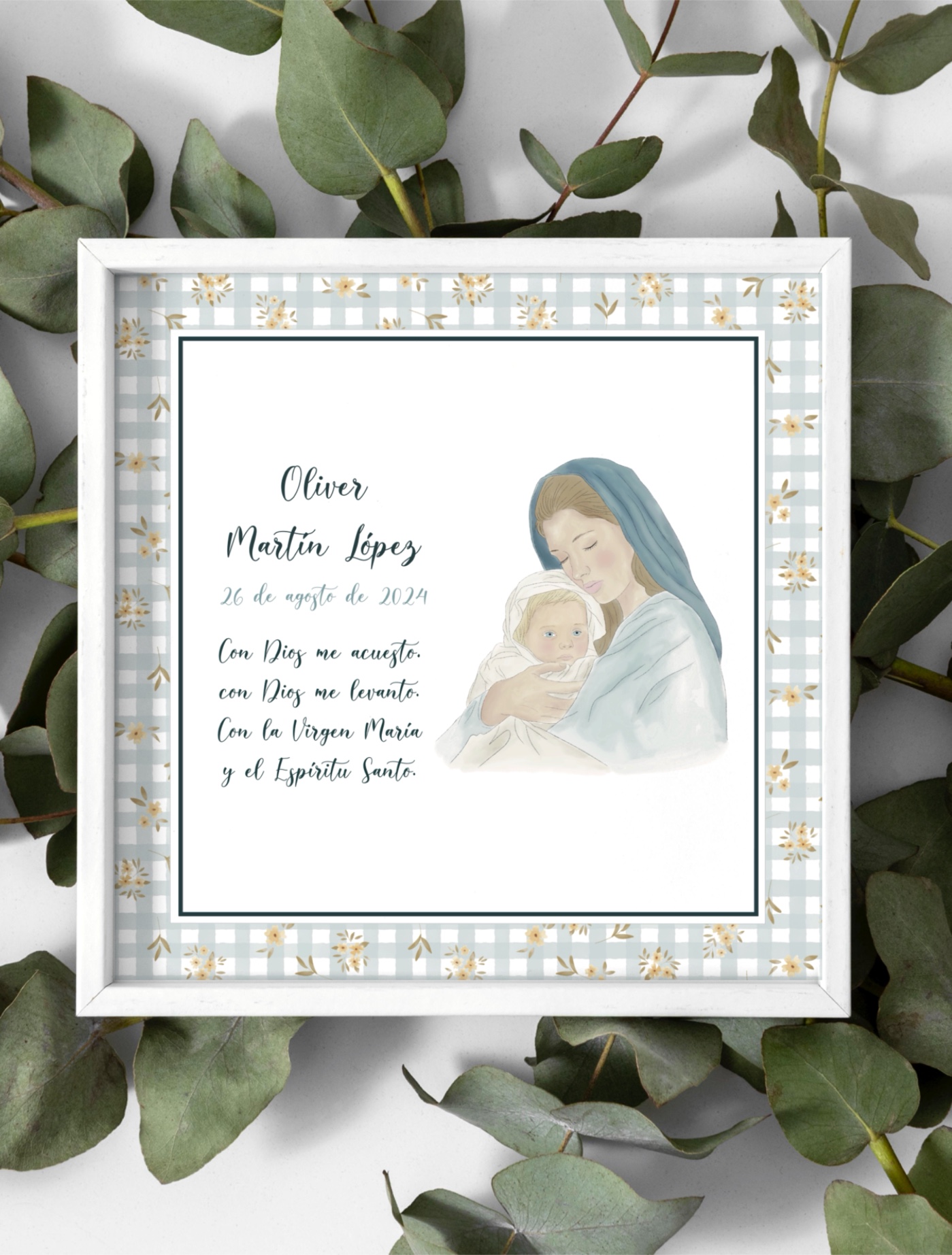 Con nuestras láminas religiosas podrás decorar la habitación de tu bebé con una pequeña oración que tendrá de recuerdo para siempre. Puedes personalizar esta lámina con el nombre y la fecha de nacimiento de tu bebé.