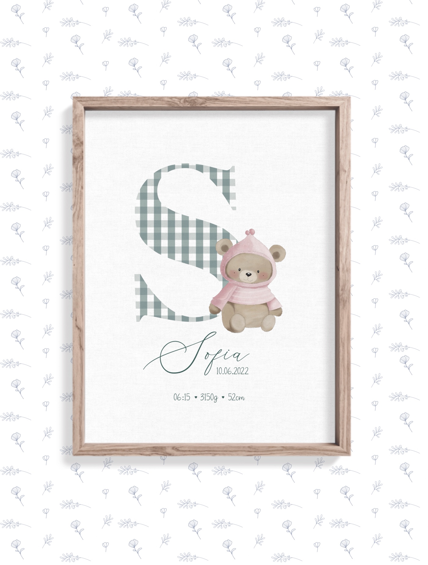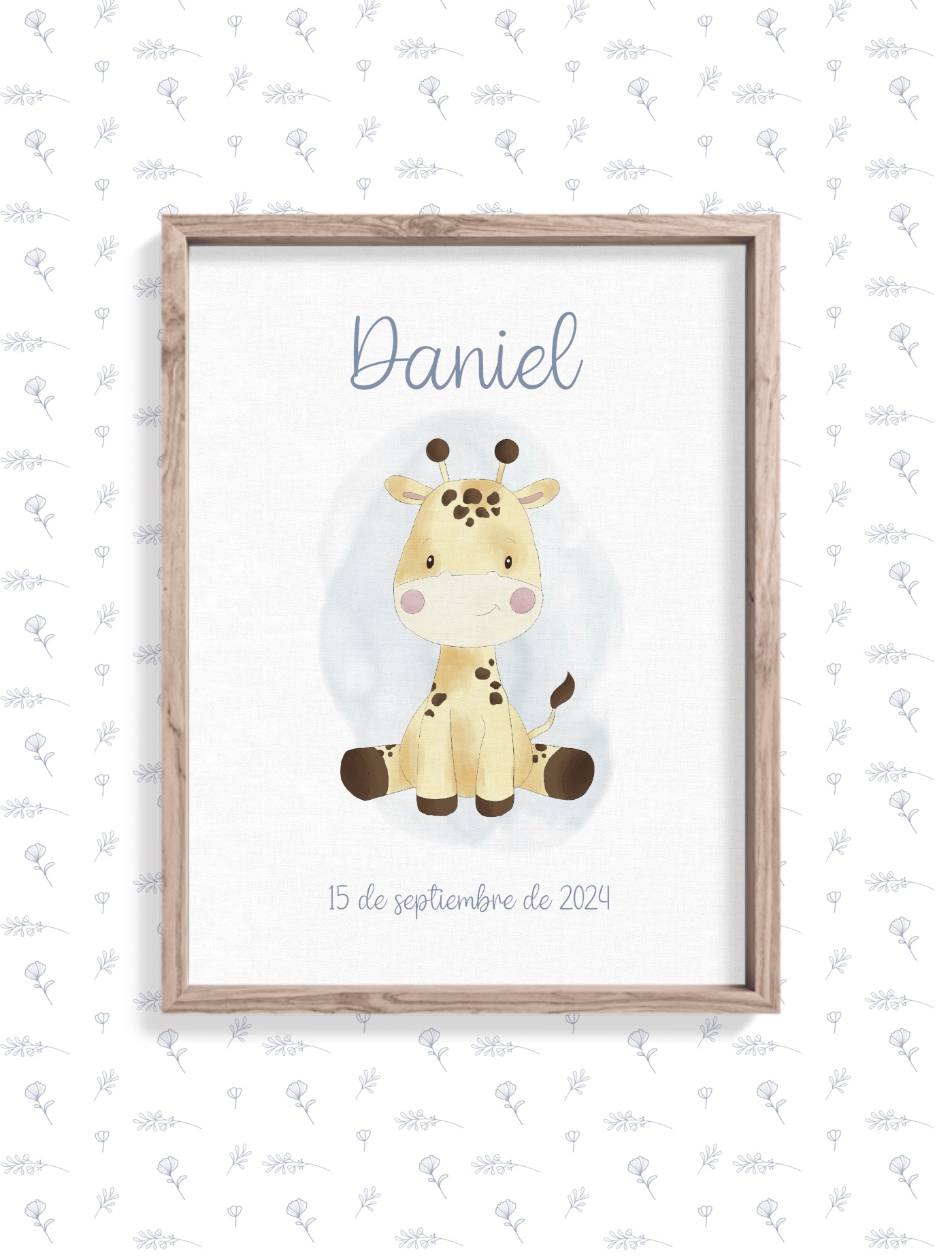 Puedes personalizar esta lámina con todos los detalles del recién nacido que se incluyen en el formulario. Si hay algún dato que desconoces, puedes dejarlo en blanco y nosotros adaptaremos el diseño.