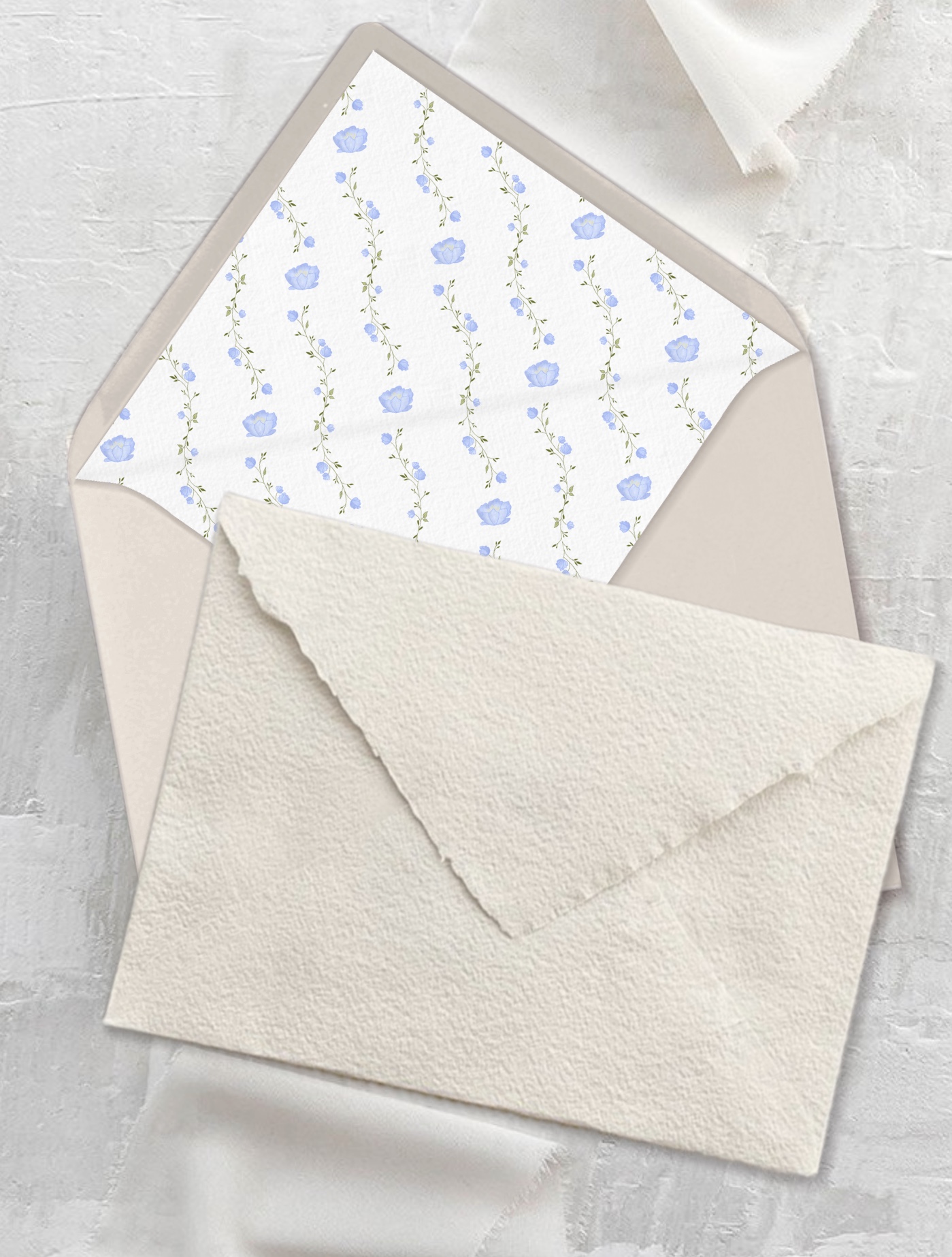 Los sobres forrados son una opción elegante para hacer que tu invitación sea única. El forro es un complemento que hace especial el sobre de tu invitación. Cuéntanos tu idea, puede ser un forro con el estilo de la invitación o con una ilustración de algún lugar importante para vosotros.