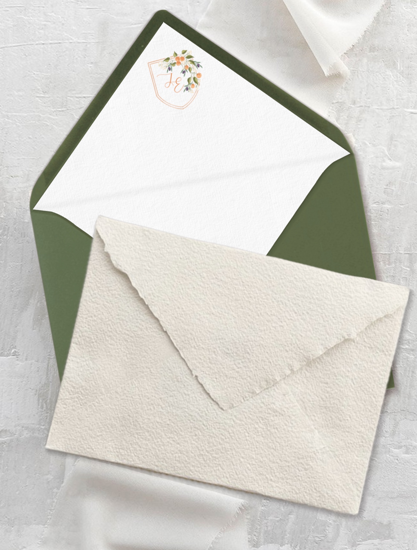 Los sobres forrados son una opción elegante para hacer que tu invitación sea única. El forro es un complemento que hace especial el sobre de tu invitación. Cuéntanos tu idea, puede ser un forro con el estilo de la invitación o con una ilustración de algún lugar importante para vosotros.