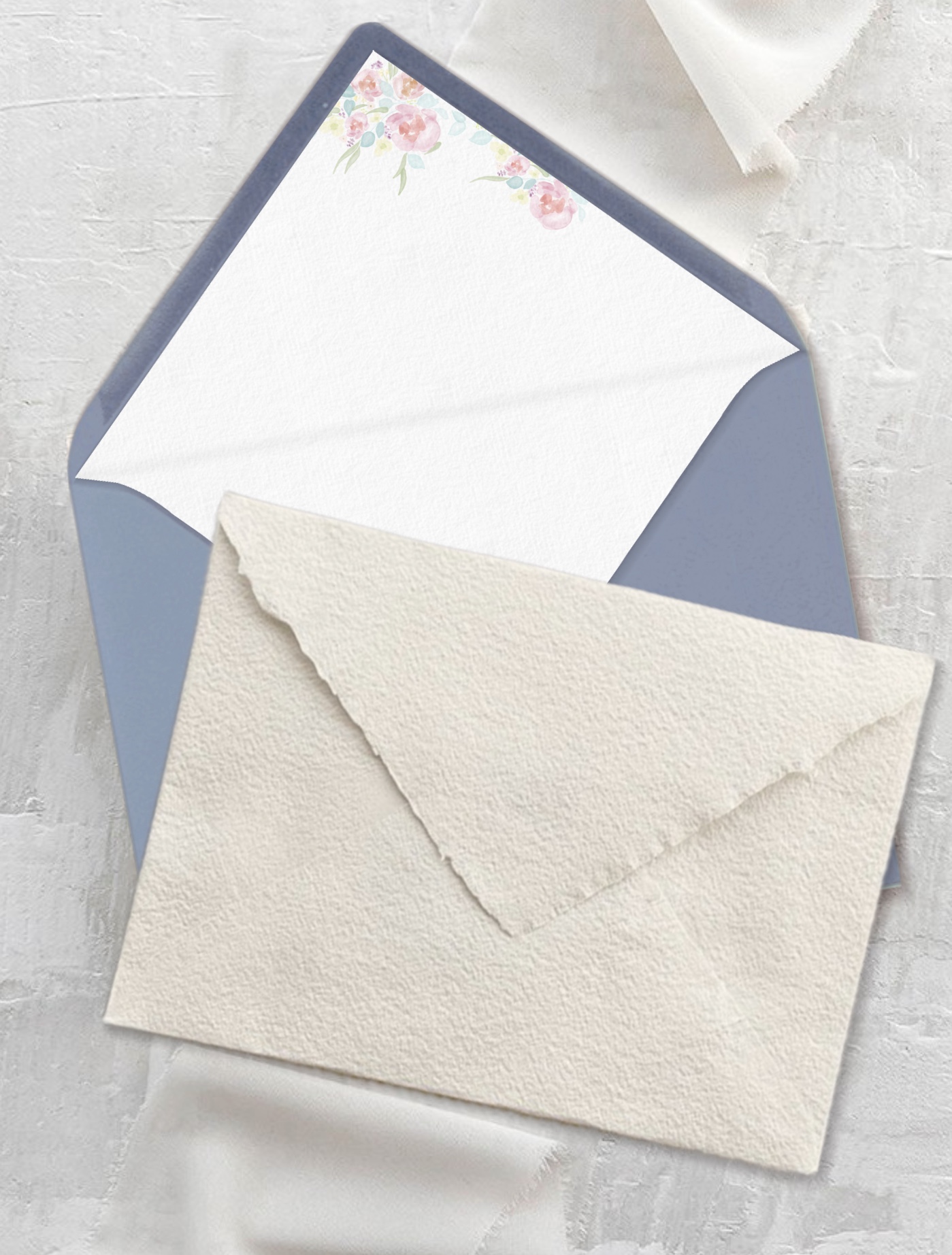 Los sobres forrados son una opción elegante para hacer que tu invitación sea única. El forro es un complemento que hace especial el sobre de tu invitación. Cuéntanos tu idea, puede ser un forro con el estilo de la invitación o con una ilustración de algún lugar importante para vosotros.
