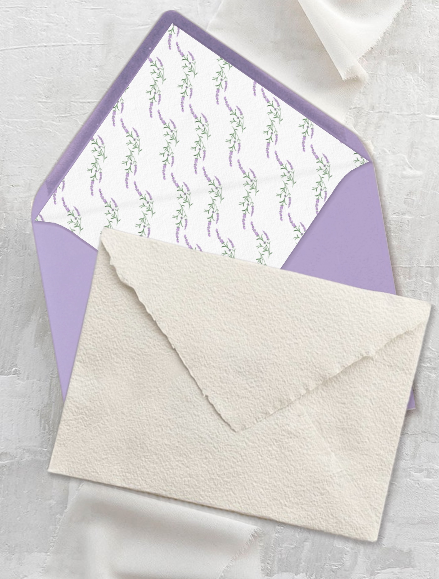 Los sobres forrados son una opción elegante para hacer que tu invitación sea única. El forro es un complemento que hace especial el sobre de tu invitación. Cuéntanos tu idea, puede ser un forro con el estilo de la invitación o con una ilustración de algún lugar importante para vosotros.