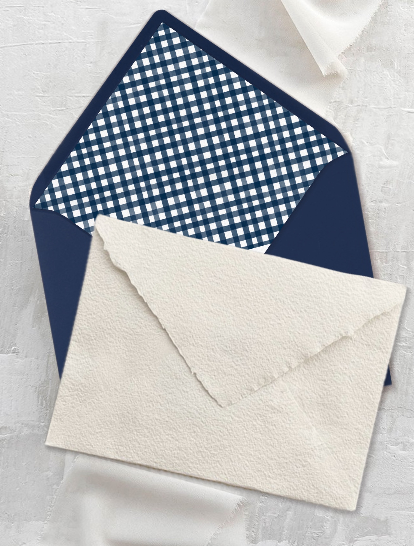 Los sobres forrados son una opción elegante para hacer que tu invitación sea única. El forro es un complemento que hace especial el sobre de tu invitación. Cuéntanos tu idea, puede ser un forro con el estilo de la invitación o con una ilustración de algún lugar importante para vosotros.